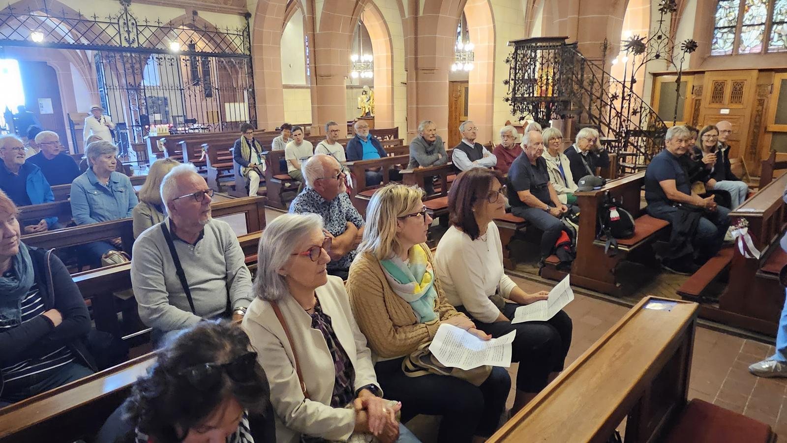 Nach der willkommenen Stärkung und einem Spaziergang auf dem Rochusberg wurde die Rochuskapelle geöffnet. Ganz spontan ermöglichte es der Gruppe ein sehr sachkundiger und engagierter Mitarbeiter mit seinen Ausführungen, Markantes aus der Geschichte der Wallfahrtskirche und dem Leben des heiligen Rochus, Patron der Pestkranken, zu erfahren.