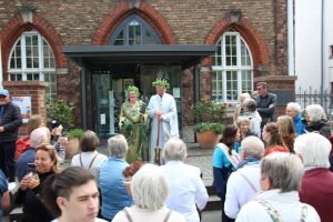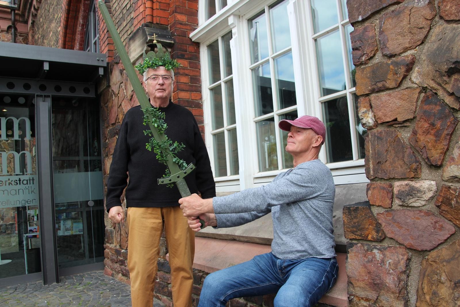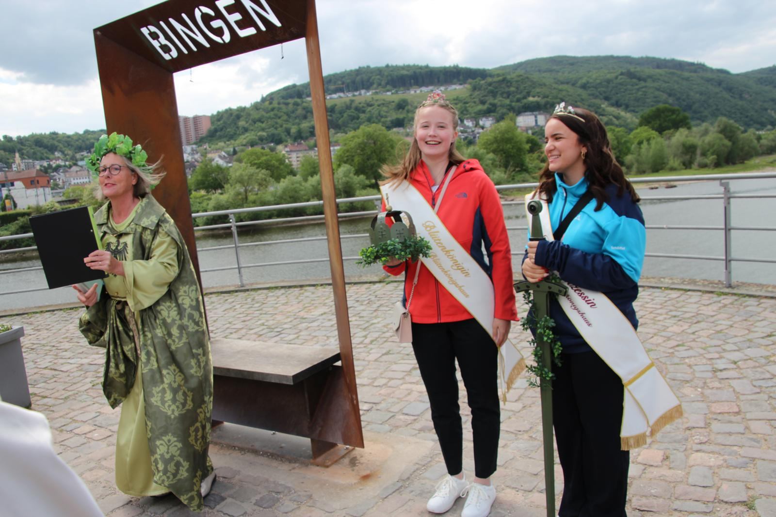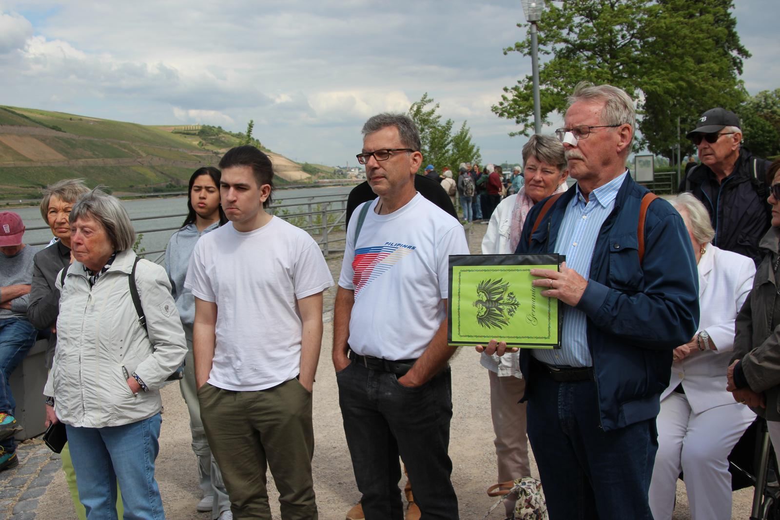 Am Nachmittag ging es weiter zum Binger Rheinufer. Dort warteten bereits die Germania und der Vater Rhein als Touristenführer in Kostümen auf die Teilnehmer. Beide wussten viel Spannendes aus Sagenwelt und Wirklichkeit zu erzählen.