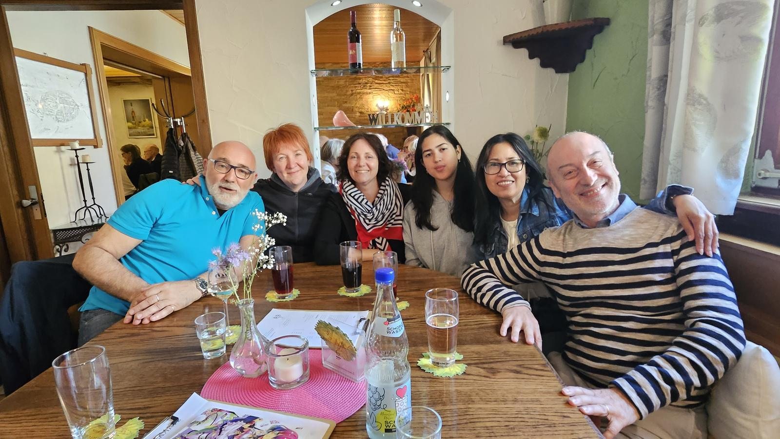 Nach dem Essen blieb Zeit für weiteren Austausch in fröhlicher Stimmung. Ein italienischer Freund hatte sogar seine Gitarre mitgebracht und stimmte das gemeinsame zweisprachige Vereinslied an, das stimmkräftig erklang. Es folgten weitere schöne italienische Lieder, und wer nicht textsicher war, fand Hilfe im Internet.