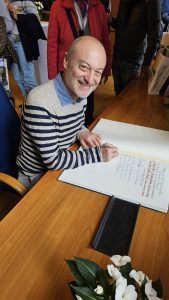 Zur Überraschung der italienischen Gäste lud der Oberbürgermeister alle Teilnehmer ein, sich ins Goldene Buch der Stadt Bingen einzutragen. Sehr gern und mit großem Stolz folgten die Gäste dieser Einladung.