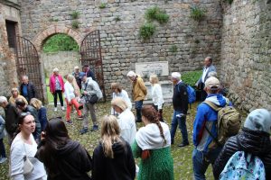 Während der Besichtigung der hochmittelalterlichen Burg bestaunten die Besucher wertvolle Waffensammlungen, Möbel und Ausstattungsobjekte. Der anschließende Spaziergang führte durch das Römische Tor zum Heiligtum der Sieben Kirchen. Eine päpstliche Bulle von 1605 gewährt den Pilgern des Heiligtums den gleichen Ablass wie bei einer Pilgerfahrt zu den sieben größten Basiliken in Rom.