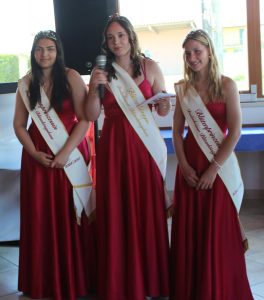 Die Budenheimer Blütenkönigin Sofya I. mit ihren Prinzessinnen Sheryn und Lianne an der Seite stellte das Blütenhaus in deutscher und italienischer Sprache vor. Sie bedankte sich für die Einladung nach Isola della Scala. Alle drei nahmen gern an dieser Begegnung teil.