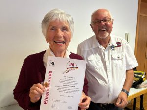 In diesem Jahr wurden Cornelia und Hanspeter Gethöffer für 30 Jahre und Ute Weigand für 20 Jahre Mitgliedschaft im Verein geehrt. Claus Berg bedankte sich bei den Jubilaren für ihre Mitarbeit und ihre Treue zum Verein. So war Cornelia Gethöffer viele Jahre als Dolmetscherin und Schriftführerin im Vorstand des DIF tätig.