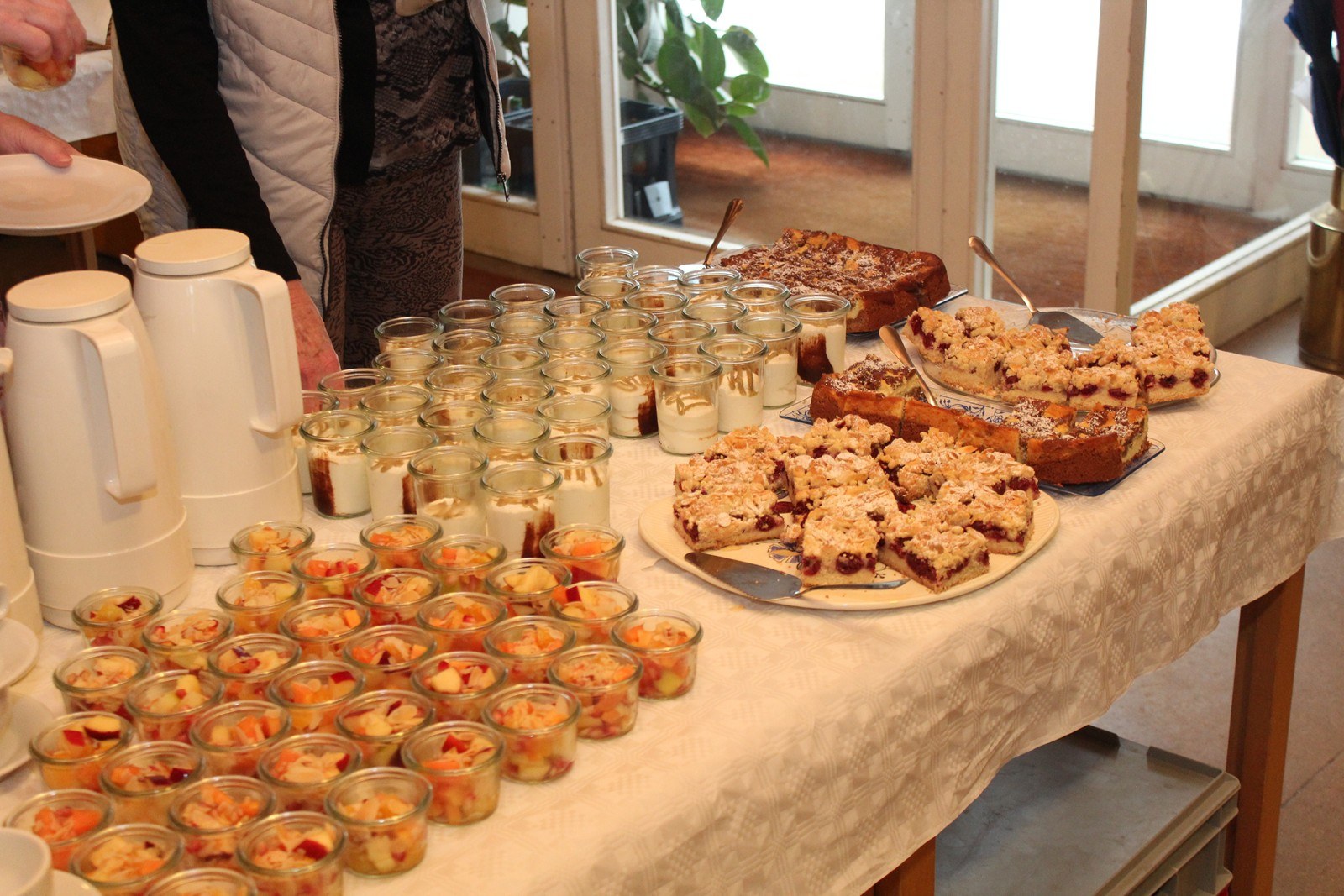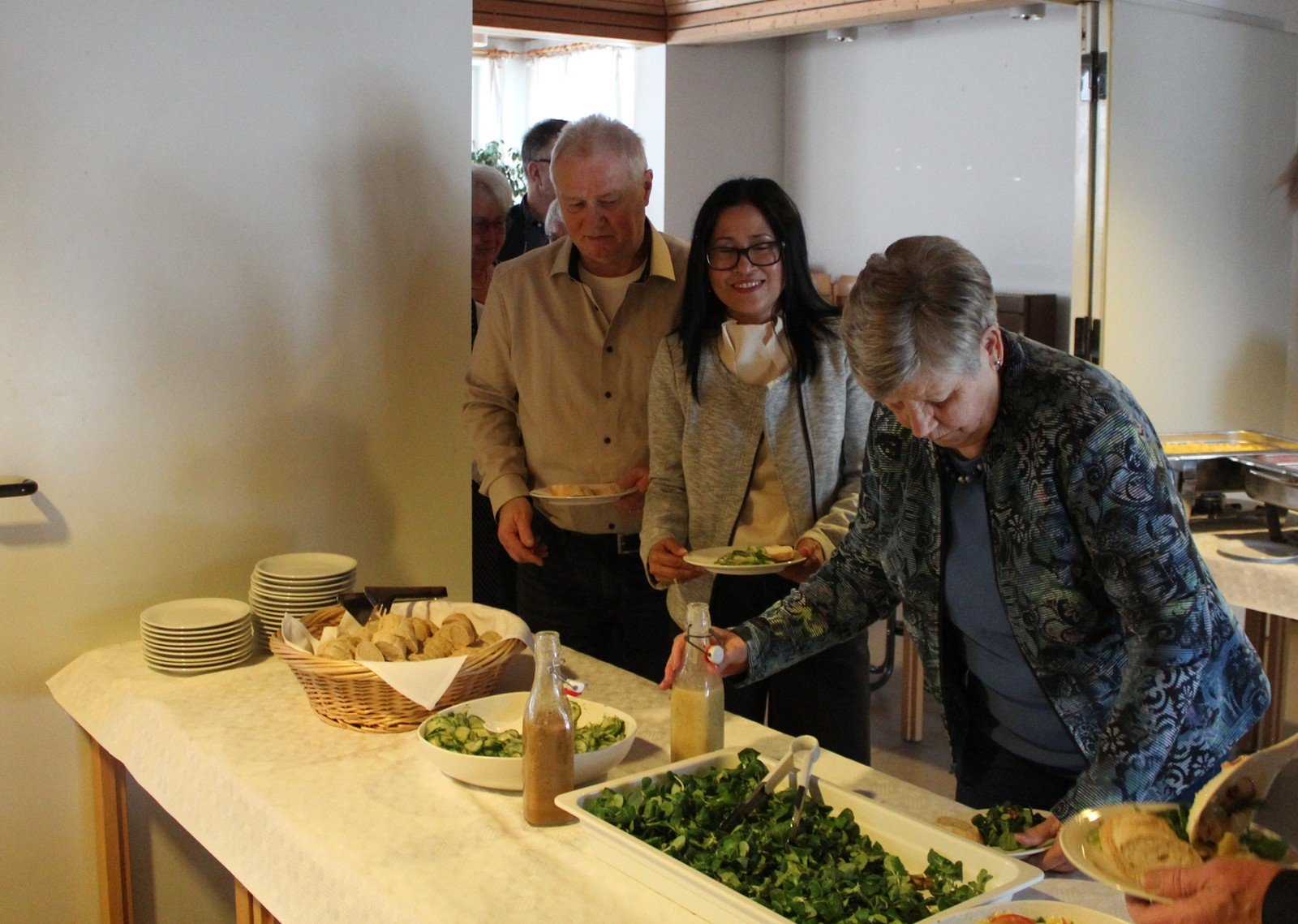 Zum Mittagessen wurde sodann ein Buffet eröffnet. Die Teilnehmer ließen sich die kalten und warmen Speisen und eine Auswahl guter Weine schmecken. Bei Kaffee und selbst gebackenem Kuchen gab es ausgiebig Gelegenheit, Neuigkeiten rund um den Verein und die Mitglieder auszutauschen und angeregte Gespräche zu führen.